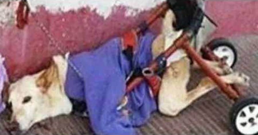 Cadela abandonada em uma cadeira de rodas implorava para sobreviver