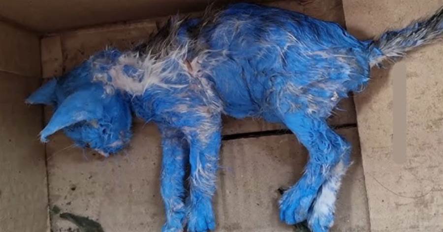 Pintaram Gata de Azul Para Se Divertir E Abandonaram Chorando na Chuva